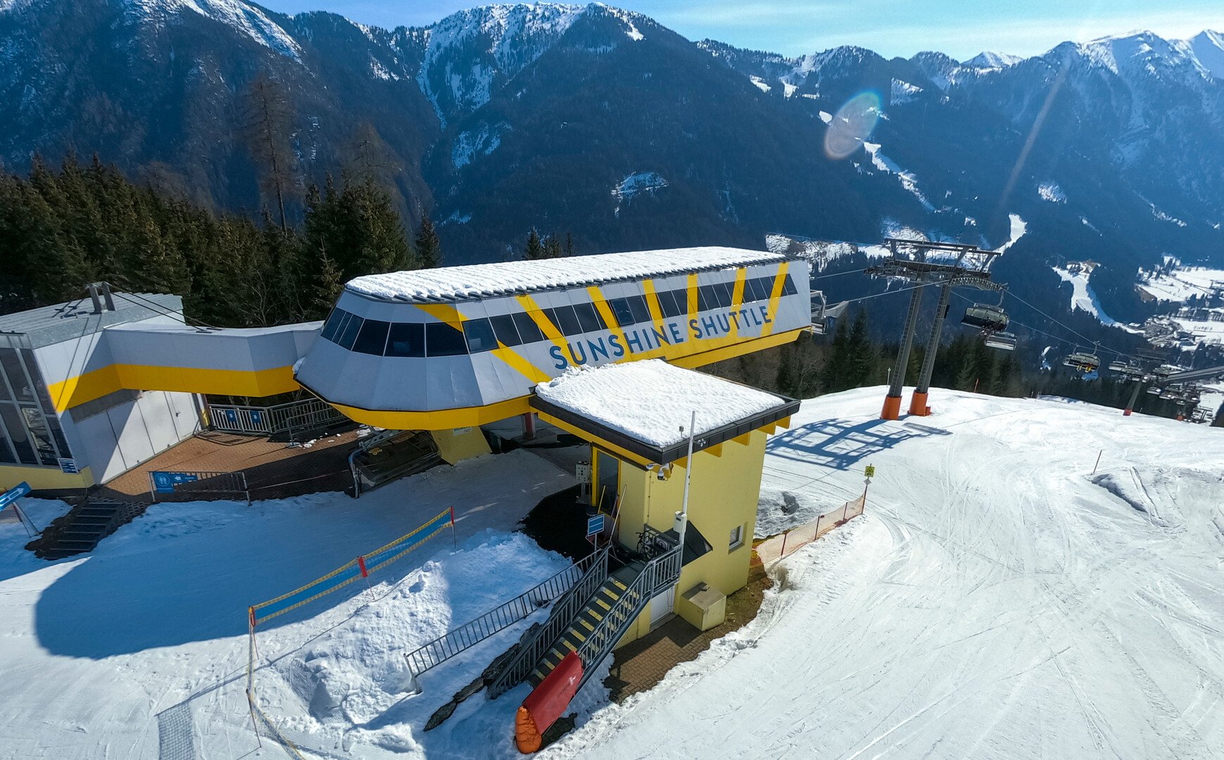 It takes you from the Flachauwinkl valley station to the mid-station and to the south-facing slopes of the Flachauwinkl valley descent. The mountain station is located directly across from the Sun House. Inspired by the sunny mountain ride, our guests have composed entertaining rhymes that adorn the weather protection covers of the Sunshine Shuttle.
